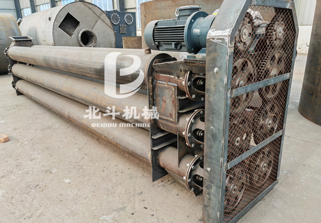 冷炭出料機(jī)可以達(dá)到冷卻物料的目的,同時(shí)減少占用空間。水冷內(nèi)螺旋輸送機(jī)包括進(jìn)料單元、出料單元、筒體、冷卻單元、驅(qū)動(dòng)單元和支撐單元,進(jìn)料單元和出料單元分別設(shè)置于所述筒體的兩端,驅(qū)動(dòng)單元使筒體圍繞其中心對(duì)稱(chēng)軸回轉(zhuǎn),支撐單元支撐筒體,所述筒體包括外筒體和內(nèi)筒體,靠近進(jìn)料單元的外筒體外周設(shè)置有一定長(zhǎng)度的夾套,冷卻套筒從一端進(jìn)水,從另一端排水,水和炭不接觸,提高了炭的品質(zhì),具有更好的冷炭效率,從而將成品炭的溫度降至常溫。